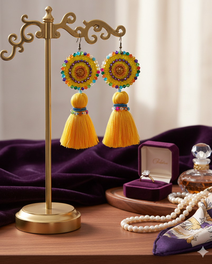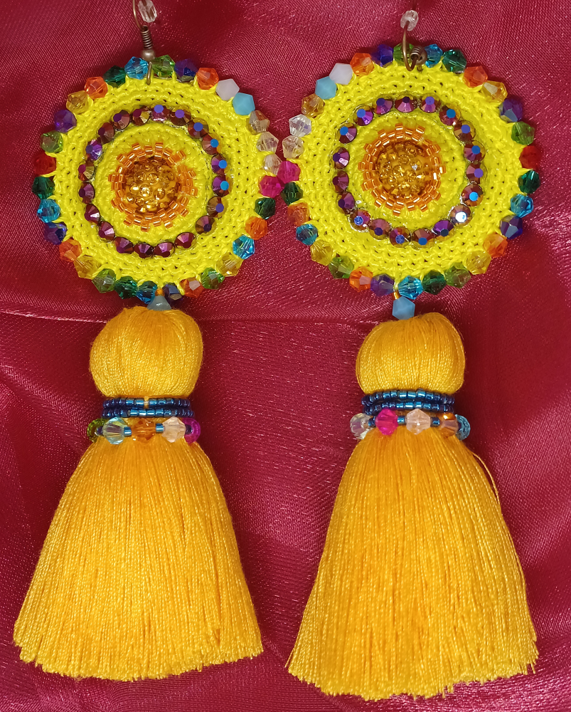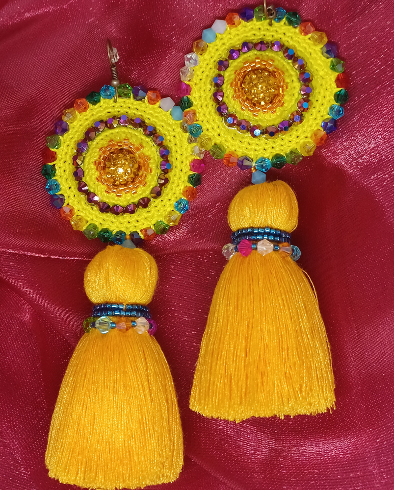 Každú náušničku ukončuje ručne robený strapček, ktorý skrášľujú korálky.