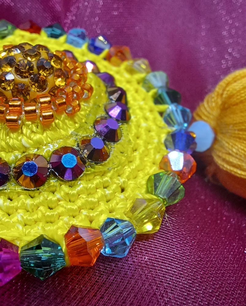 Stred náušničky tvorí krásna trblietavá shamballa, ktorú som obšila Peyote stehom