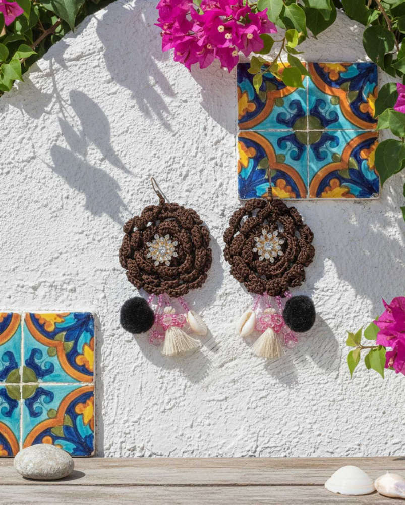 Háčkované dizajnové náušnice "Dizajnový odkaz Stredomoria"
