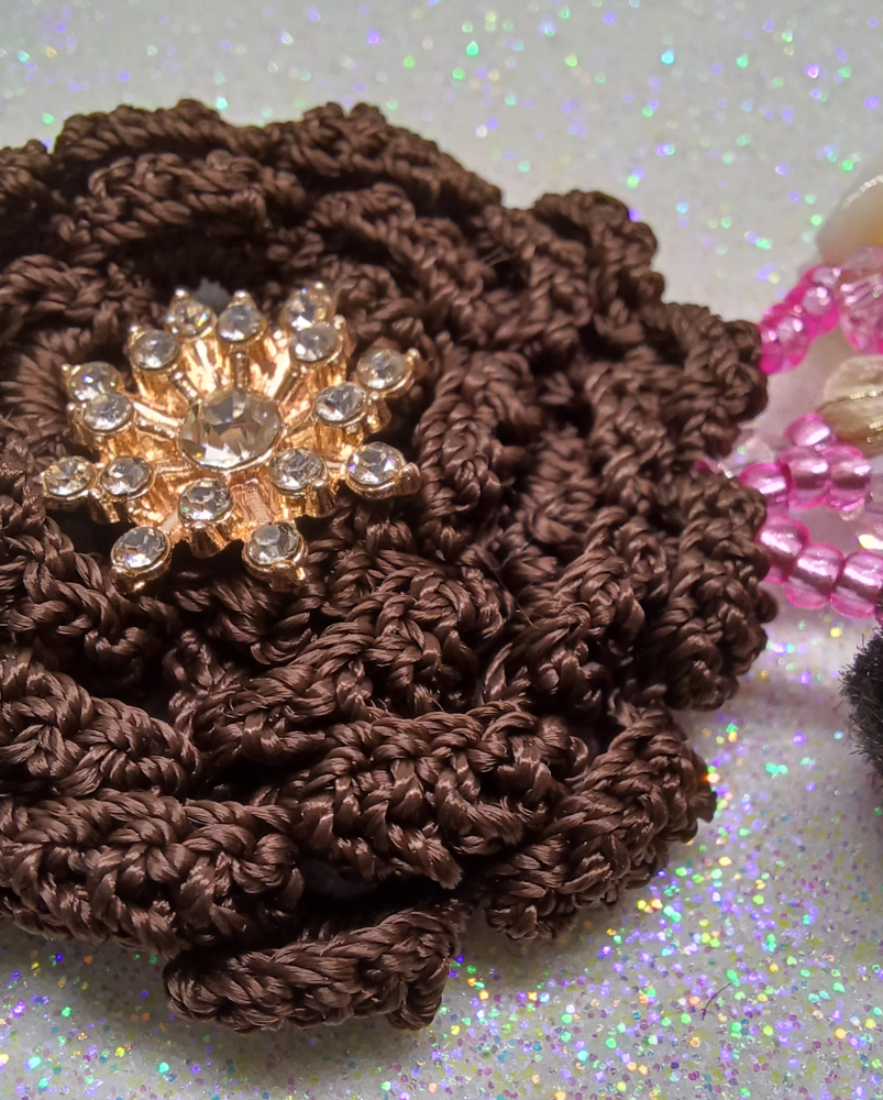Základ náušničky tvorí ručne háčkovaný romantický kvietok z kolekcie "Flora".