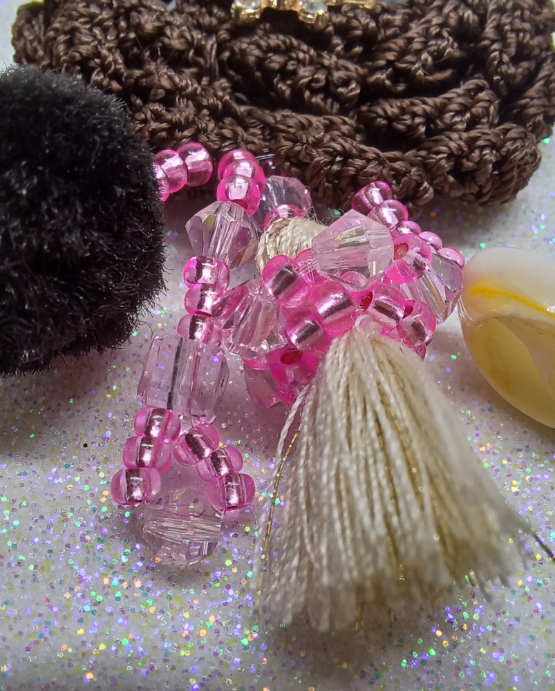 Každú náušničku ukončuje ručne robený strapček, ktorý skrášľujú korálky a Swarovski komponenty.