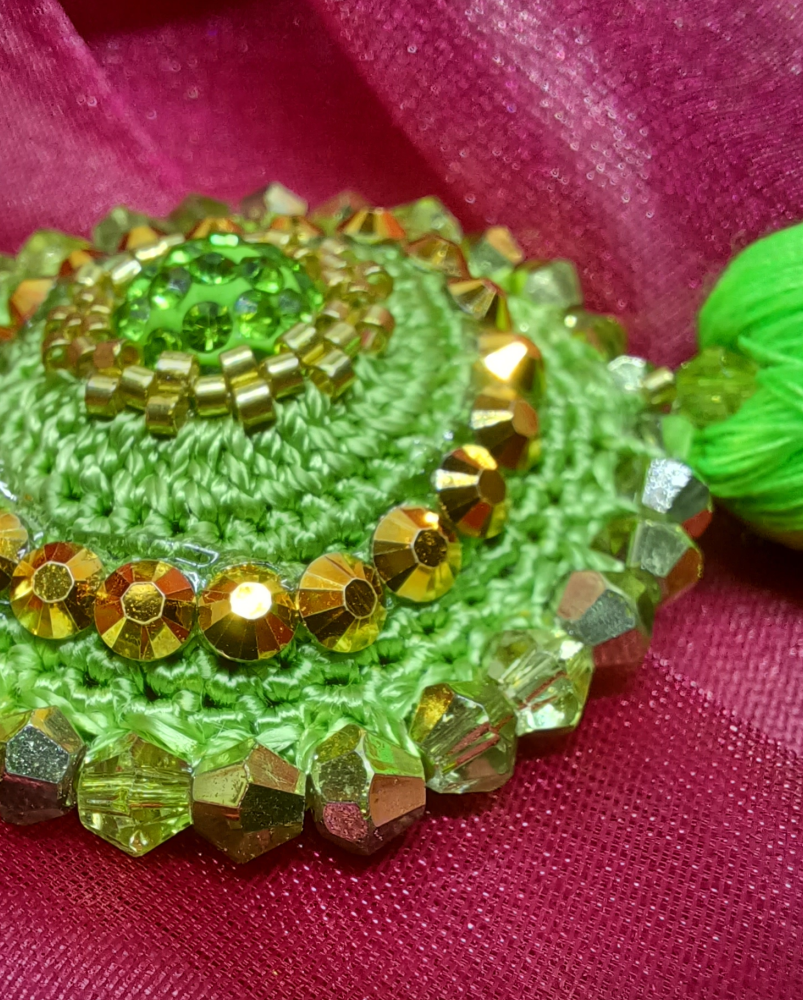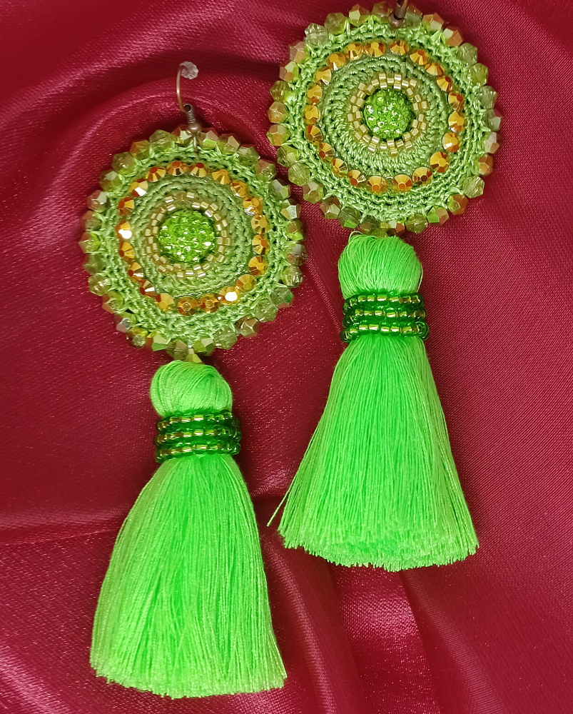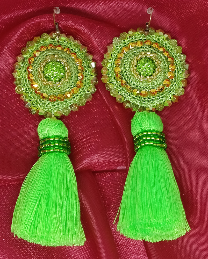Základ náušničky je ručne háčkovaný.