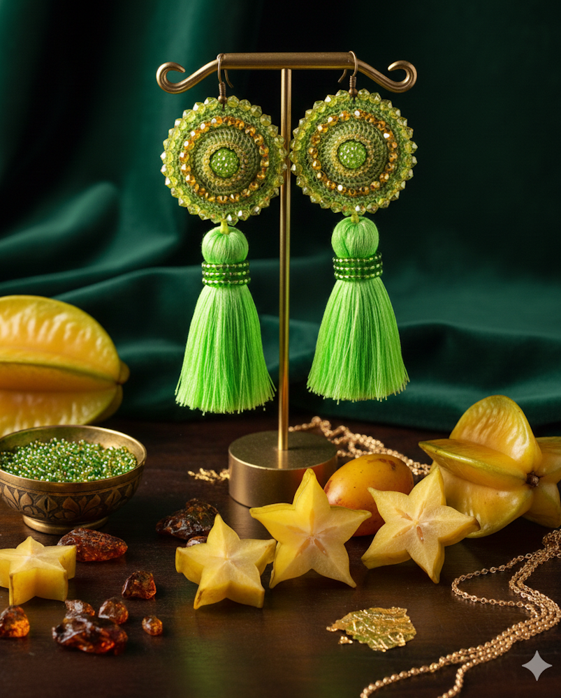 Háčkované dizajnové náušnice "Exotická Karambola"