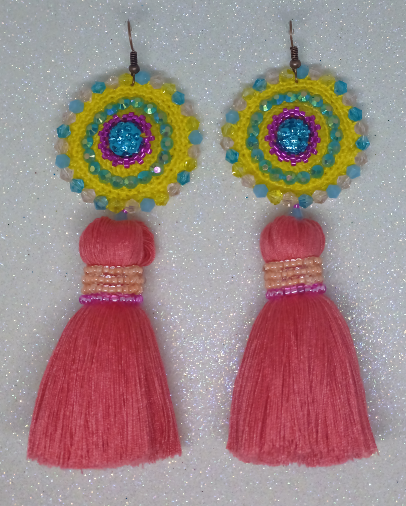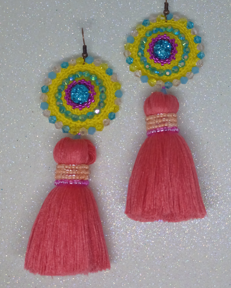 Každú náušničku ukončuje ručne robený strapček, ktorý skrášľujú korálky.