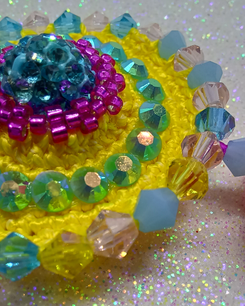 Stred náušničky tvorí krásna trblietavá shamballa, ktorú som obšila Peyote stehom