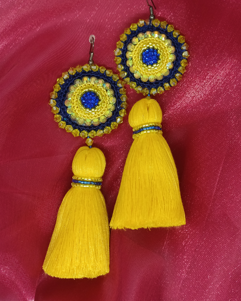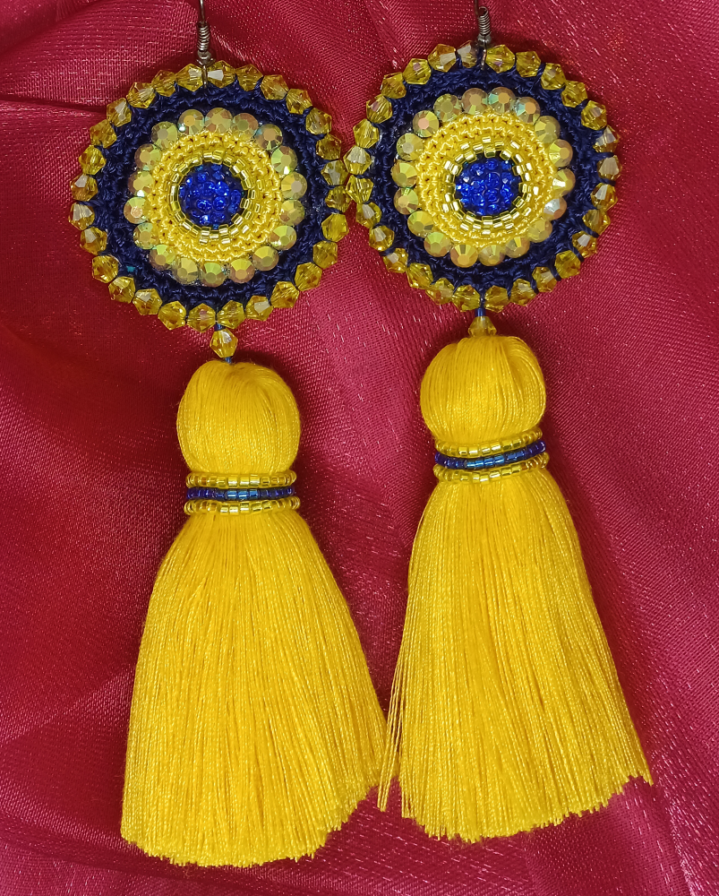 Každú náušničku ukončuje ručne robený strapček, ktorý skrášľujú korálky.