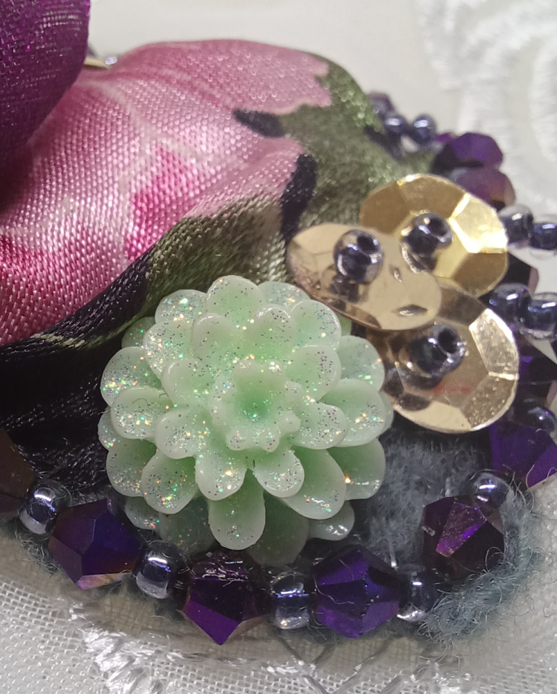 Materiál: Živicový kvet, látka, Swarovski, Toho