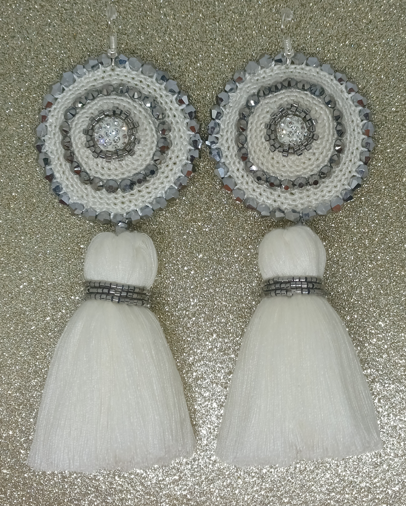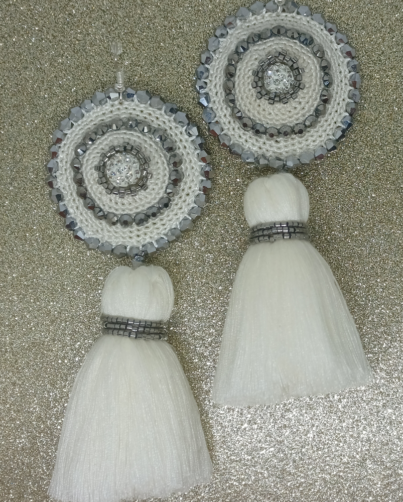 Každú náušničku ukončuje ručne robený strapček, ktorý skrášľujú korálky.