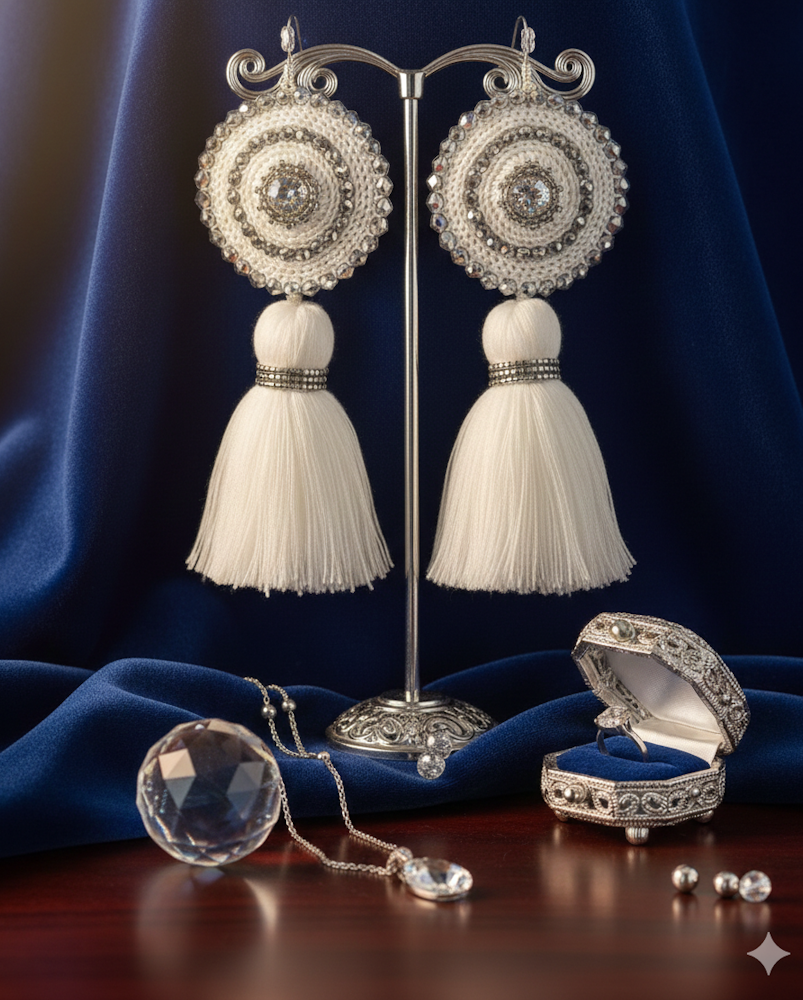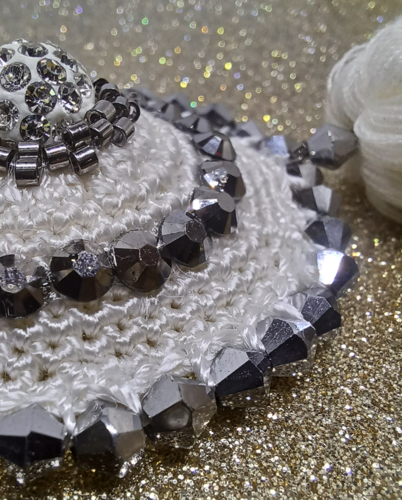 Háčkované dizajnové náušnice "Krištáľová guľa"